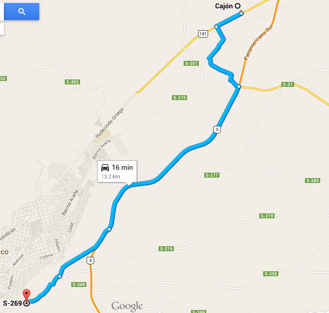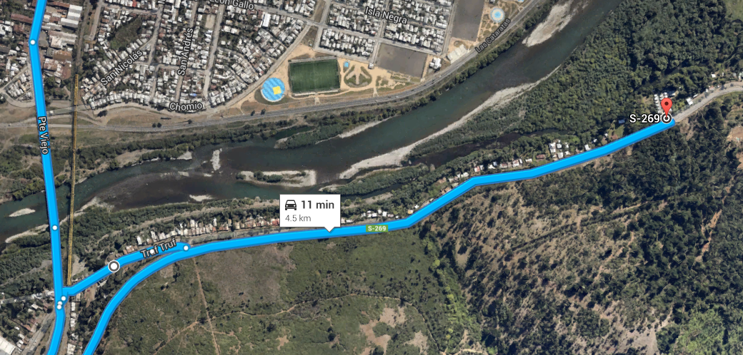 Ingresamos a Padre las casas por el puente viejo, y seguimos por villa alegre, doblamos en pleiteado seguimos hasta llegar a la ruta s-269, ubicada al borde del cerro conun huenu ( Camino a Niagara ) avansamos 2 kilometros y llegamos a afrodita motel donde lo estaremos esperando.